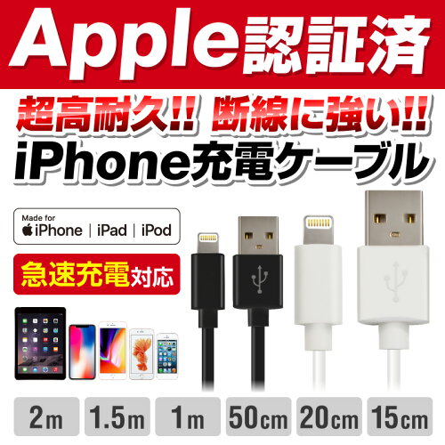 【即日出荷】iphone 充電 ケーブル ライトニングケーブル iPhone充電ケーブル iPhoneXS iPhoneXSMax iPhoneXR iphoneX iphone8 iphone7 iphone6s iphone6 iphone5s iphone5 iphonese plus ipad 急速充電 mfi認証 apple認証 1m 2m 50cm 20cm 15cm 150cm