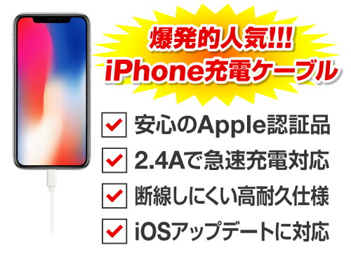 【商品特徴】 iphone ( アイフォン ) を 急速 に 充電 できる MFi ライセンス( apple から 認定 をもらった MFi認証 )を取得した充電/データ転送用ケーブル 純正 ケーブルと同様にOSのアップデートにも対応しており安心して利用可能。